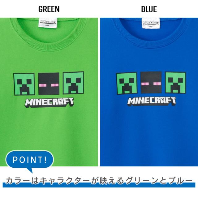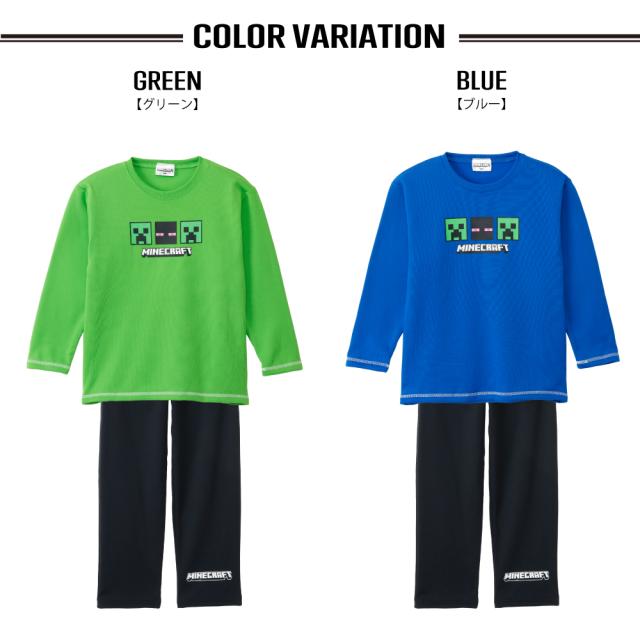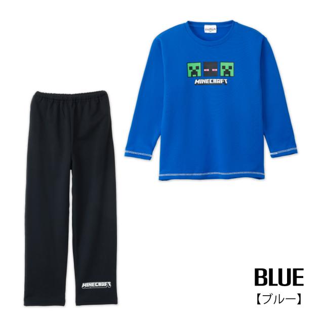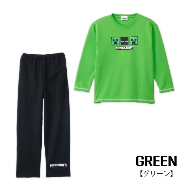 マインクラフト パジャマ ボーイズ シャギー 裏起毛 長袖 長パンツ 秋 冬 胸プリント グリーン ブルー 120-160 66567ah
