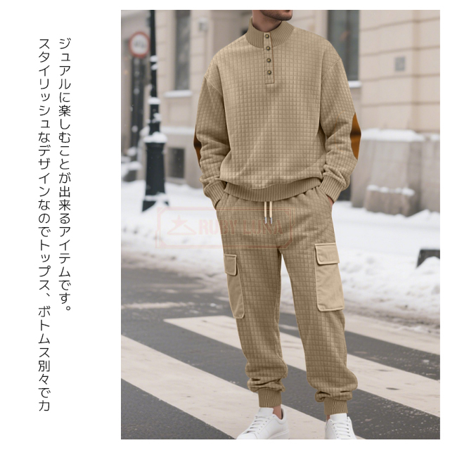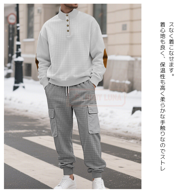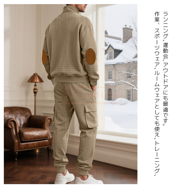 最安挑戦 冬新作 送料無料 新作 セットアップ メンズ ジャージ 小格子柄 長袖パーカー ロングパンツ 2点セット 無地 シンプル 春秋冬 カジュアル セットアップ 運動服 普段着 部屋着 ルームウェア スポーツ 快適 トレーニング アウトドア