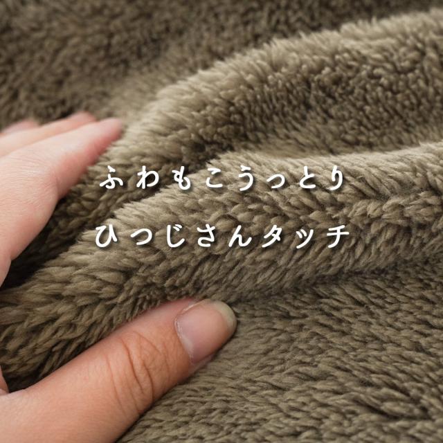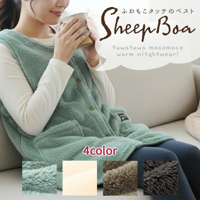 シープタッチ素材の衿なしベスト。シンプルなデザインなので、部屋着だけでなくちょっとしたお出掛けにもちょうどいい。
