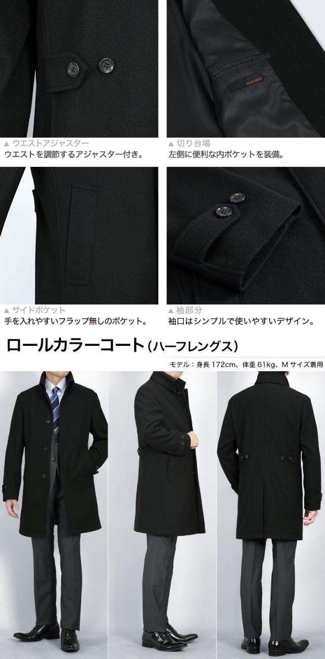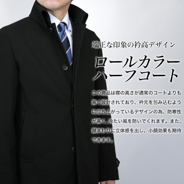 衿高 ロールカラーコート メルトン ウールライク素材 ポリエステル100% スリム ハーフコート なめらか 暖かい 保温性 ビジネス カジュアル 秋冬春 メンズ おしゃれ