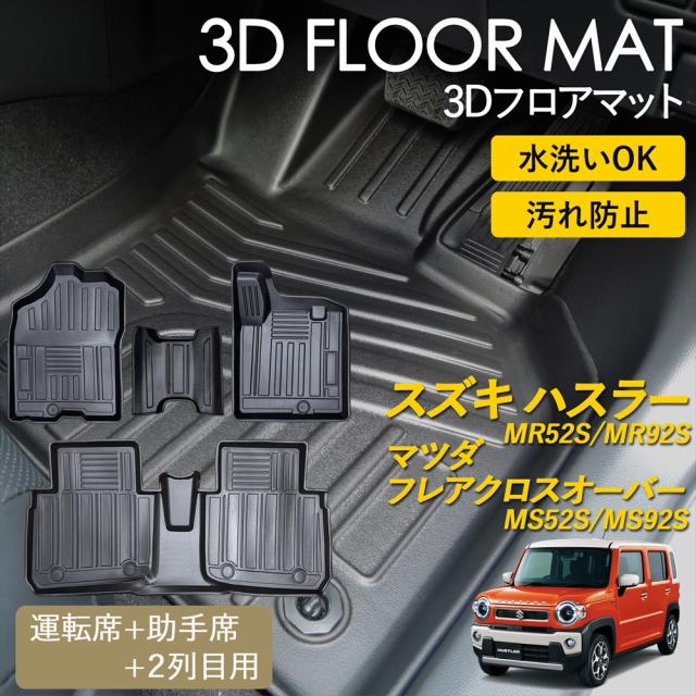 ハスラー フレアクロスオーバー 3D フロアマット ラグ マット 3Dマット 運転席 助手席 1列目 2列目 セット ピッタリフィット 汚れ防止 防水 防汚 お手入れ簡単 丸洗い 置くだけ 車種専用設計 立体 カーマット 前席 後席 スズキ SUZUKI MAZDA 2020年1月〜 カスタム カー用品