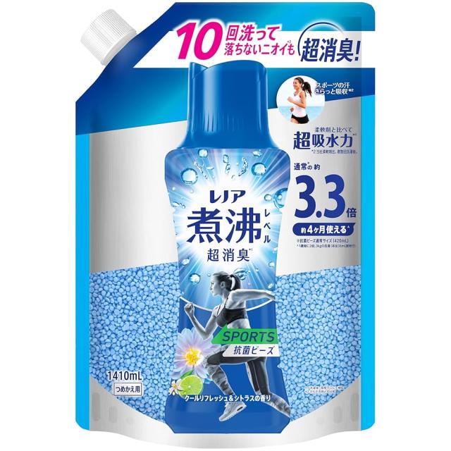 レノア 超消臭 煮沸レベル 抗菌ビーズ スポーツ クールリフレッシュ&シトラス 詰め替え 超特大 1410mL 抗菌 P&G