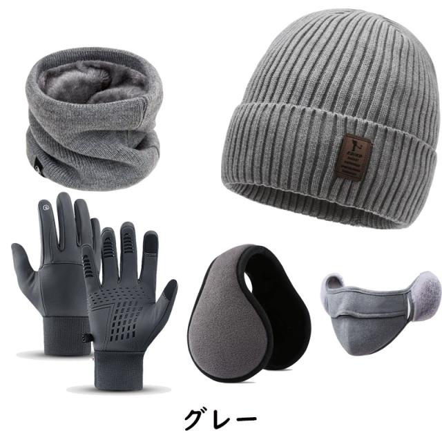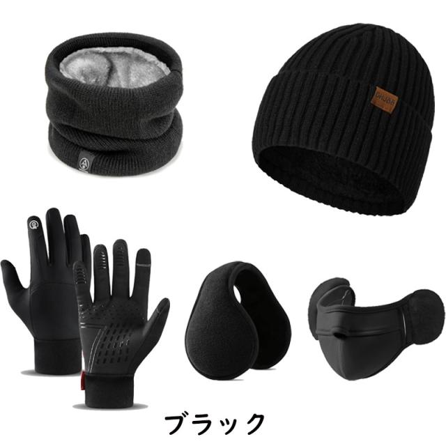 お得!防寒5点セット 【ニット帽子+ネックウォーマー+防寒手袋+イヤーマフ+防寒マスク】 メンズ レディース 防寒 保温 ニット帽子 ニット ビーニー 裏起毛 もこもこ レディース 裏ボア ニットキャップ スノボ シンプル 釣り 登山 自転車 バイク 雪遊び ギフト プレゼント