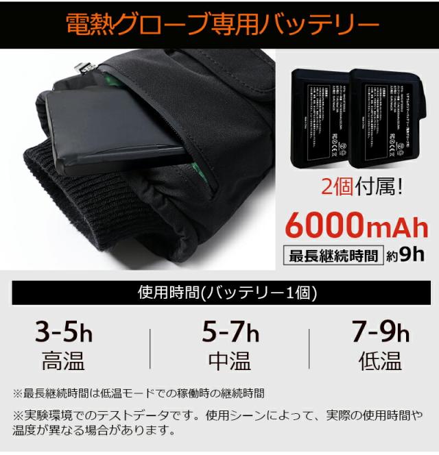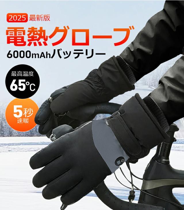 電熱グローブ バイク 6000mAhバッテリー 防水フィルム内蔵 保温素材 バッテリー ヒーターグローブ 冬用 高機能保温素材 裏起毛 3段階温度調整 撥水加工 防寒 男女兼用 ユニセックス メンズ レディース バイク 自転車 冬用