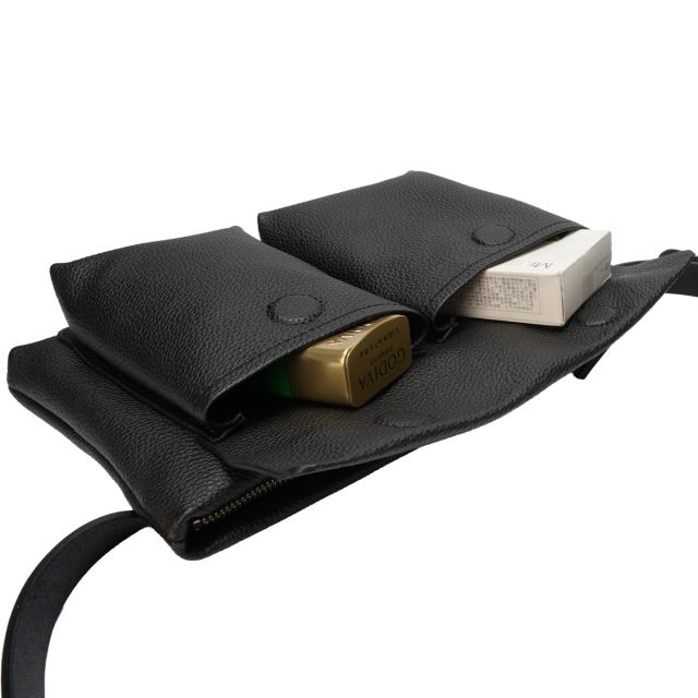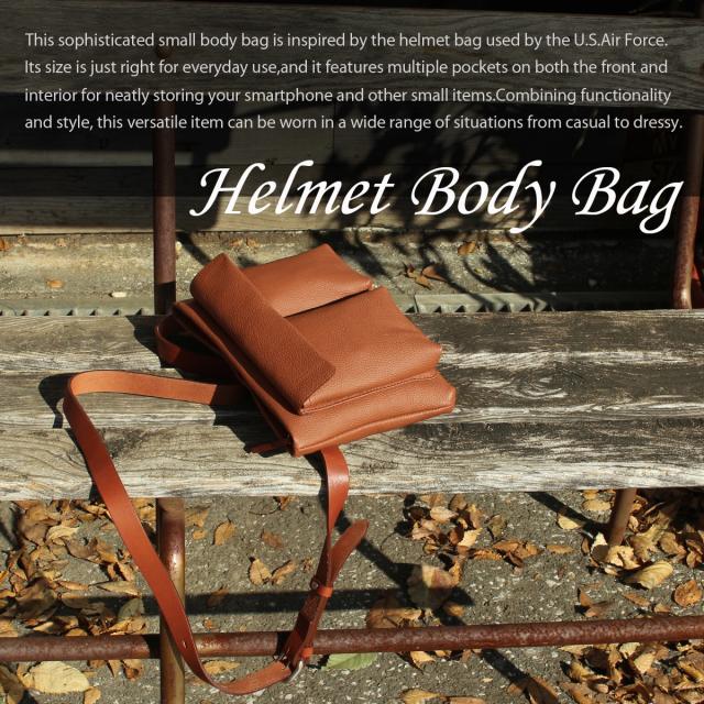 | Shrink - Helmet Body Bag - 国内の老舗タンナーより1枚1枚丁寧に仕上げた本体のレザーは、地下100メートルからくみ上げた水を鞣しの工程に使用している為、品質を安定させ、きめが細やかで独特な風合いをご堪能頂けます。更に仕上げ工程に24時間ドラムでから打ちする事で、もっちりと滑らかな風合いに仕上げました。 アメリカ空軍が使用する helmet bag からインスピレーションされた、ハイセンスな small body bag 。 日常遣いに適した大きさは、フロントにも内装にも小物収納場所が多数ある事で機能性に優れたbody bagとなります。 |