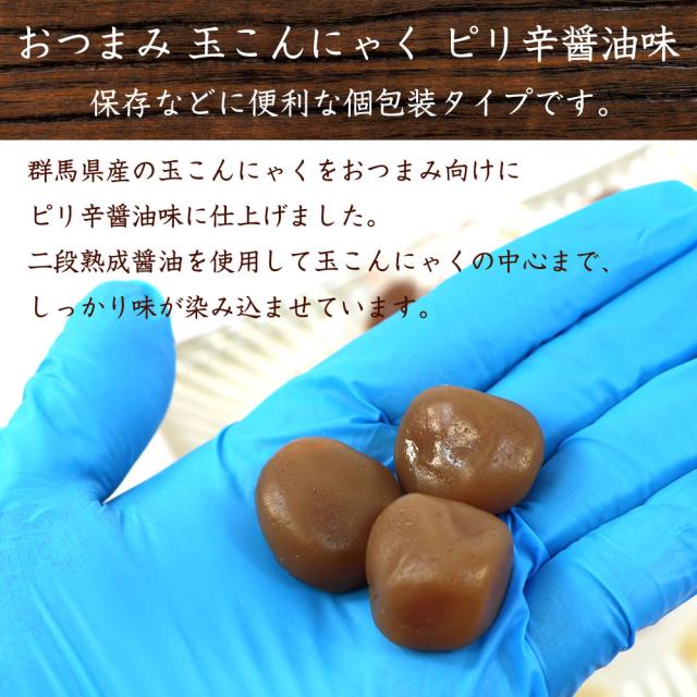 群馬県産の玉こんにゃくをおつまみ向けにピリ辛醤油味に仕上げました。