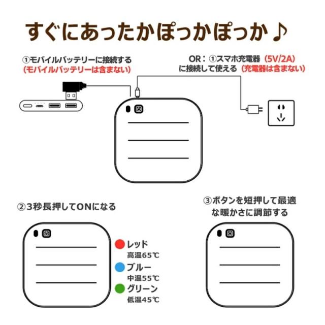 ※ご利用時間:お肌の同じ部位に長時間触れ続けないようにしてください。低温やけどを防ぐためです。 低温やけどとは:42℃で6時間、50℃で3分間、60℃で1分間にわたって触れ続けることによって皮膚の部分の組織にやけどが起こることです。