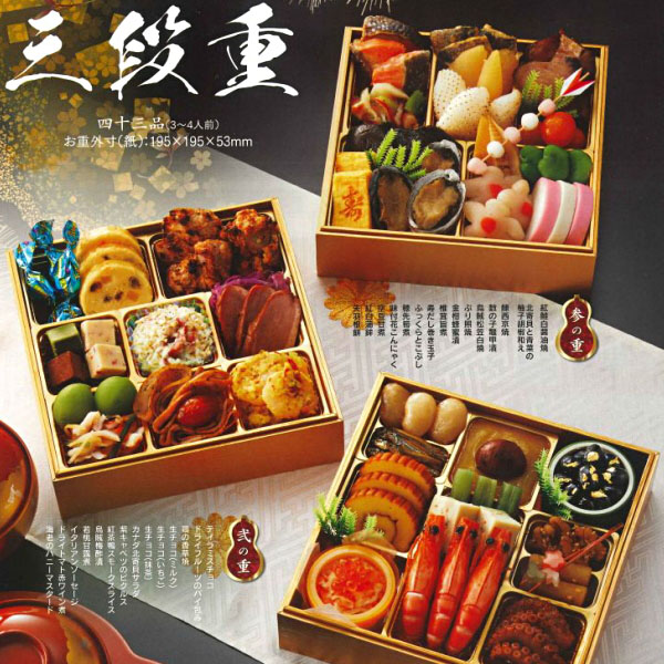 | 内容量 | お重外寸(紙):195×195×53mm(1段)×3 |