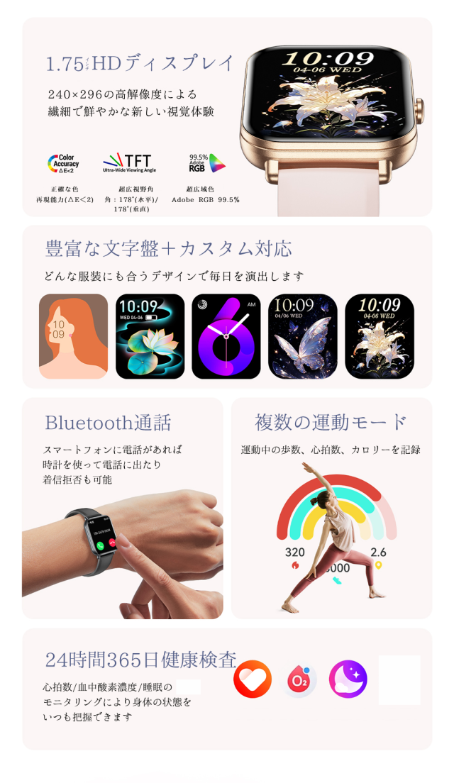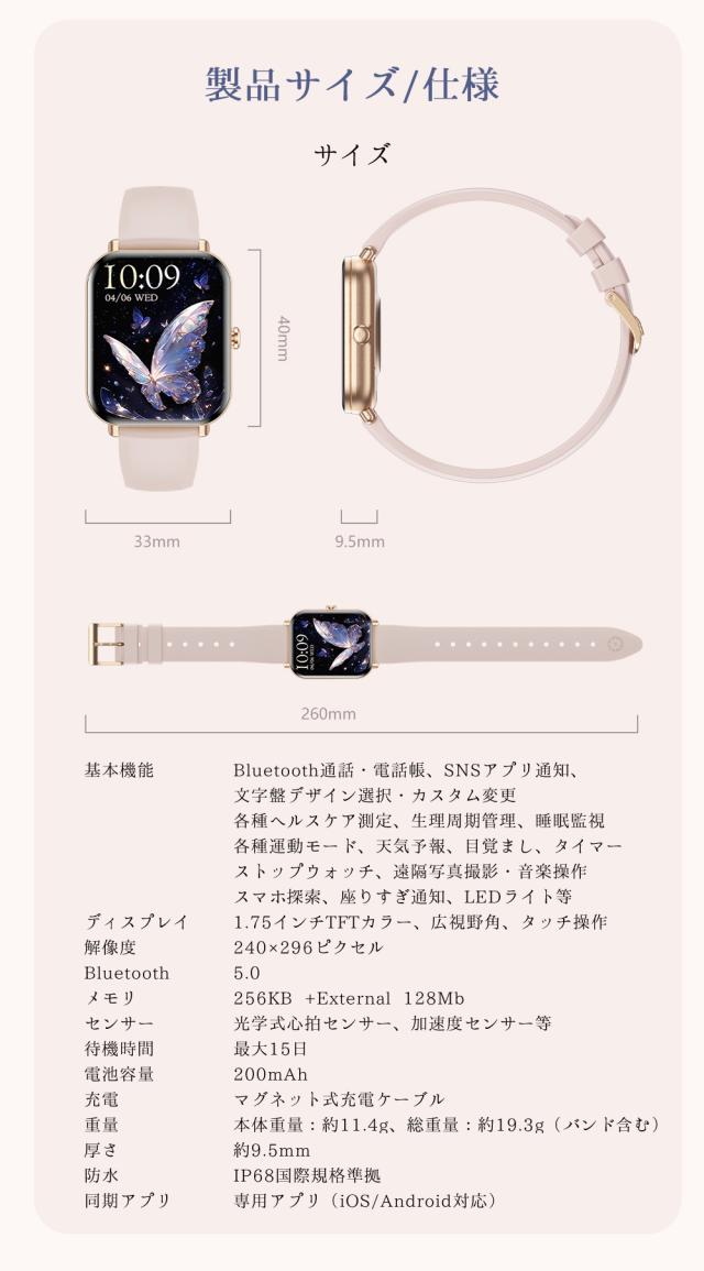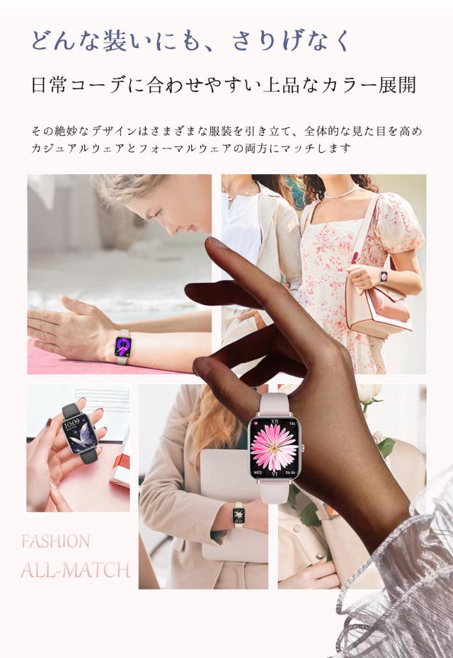 スマートウォッチ レディース 技適認証 24時間心拍数 腕時計 着信通知 歩数計 睡眠監視 音楽制御 スマートブレスレット iPhone Android対応 日本語対応 おしゃれ IP68防水 母の日 実用的 クリスマスギフト 健康管理