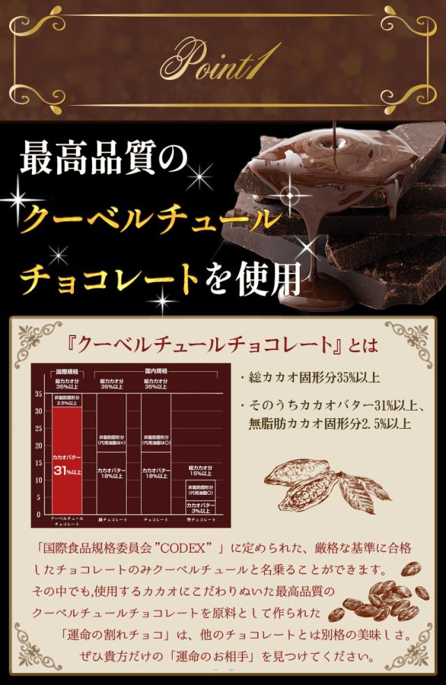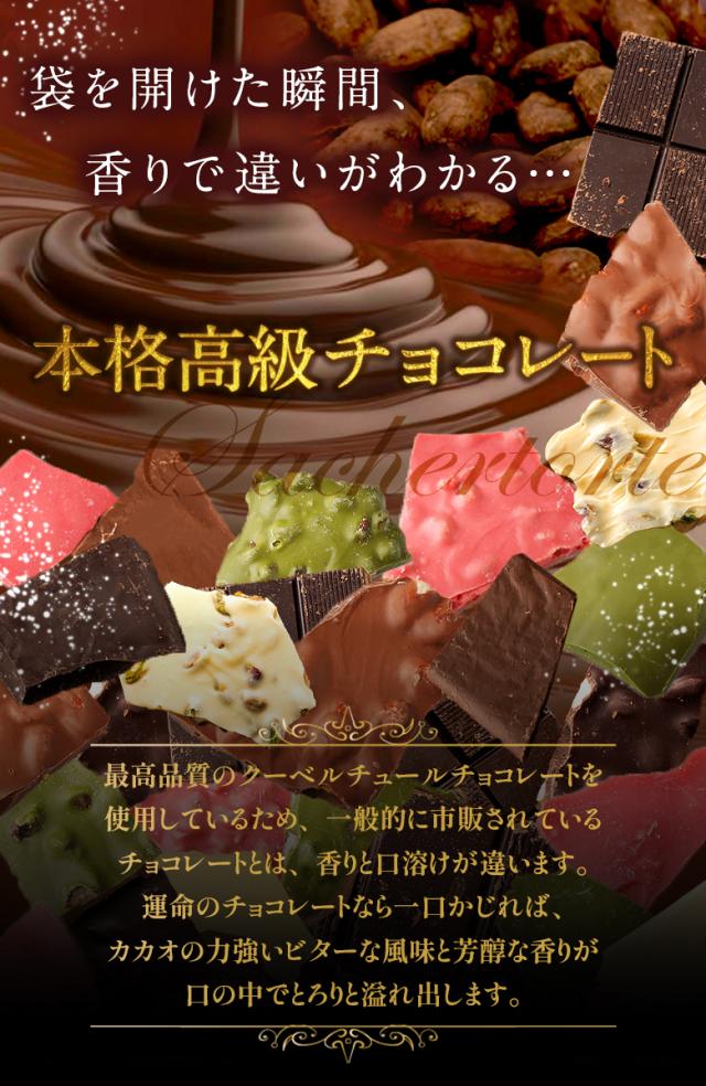 【商品詳細】14種類から、あなたにぴったりの「運命のチョコレート」がきっと見つかる♪最高品質のクーベルチュールチョコレート使用!なめらかな口どけとカカオの深い香りはまるで高級スイーツ!