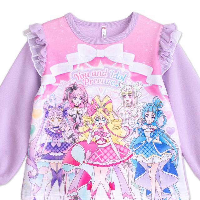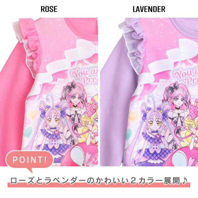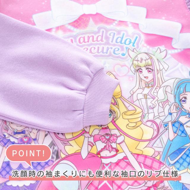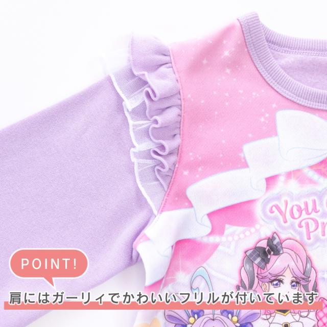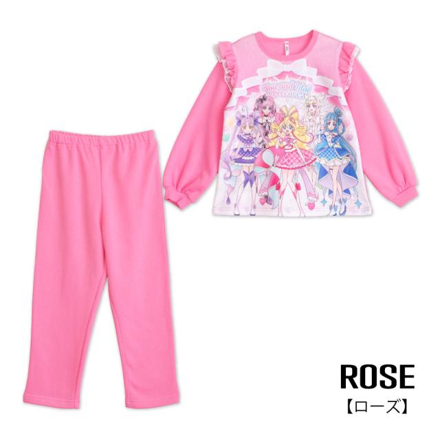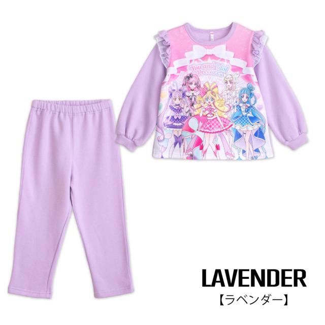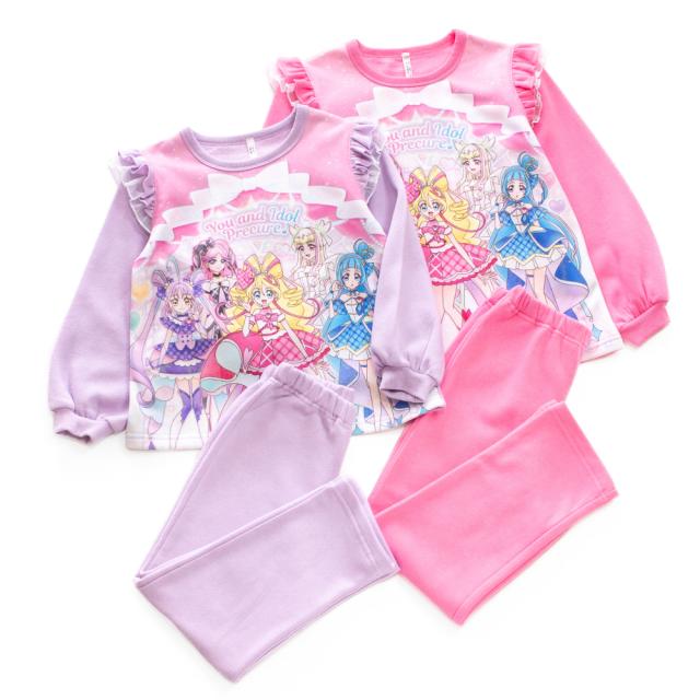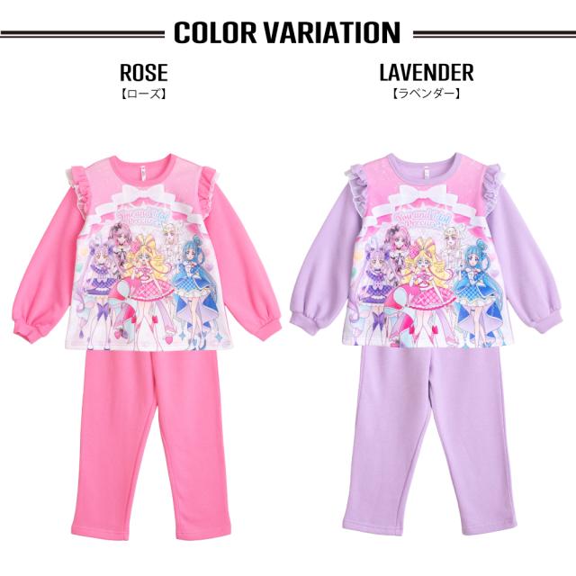光るパジャマ キミとアイドルプリキュアA ガールズ シャギー 裏起毛 長袖 長パンツ 秋 冬 プリント ローズ ラベンダー 100-130 48641