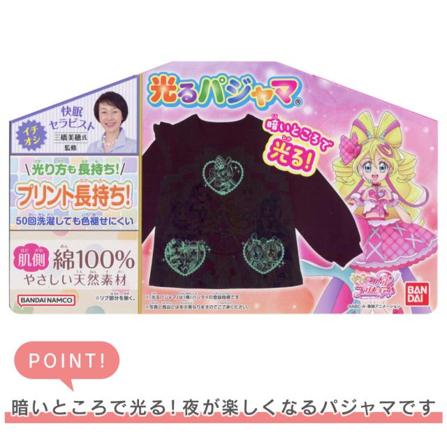 暗い部屋ではプリントが光ります! お着替えを嫌がったりまだ寝たくないお子様、電気を消すのや一人で寝るのが苦手なお子様のおやすみを応援!