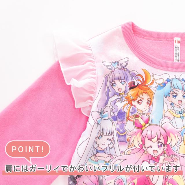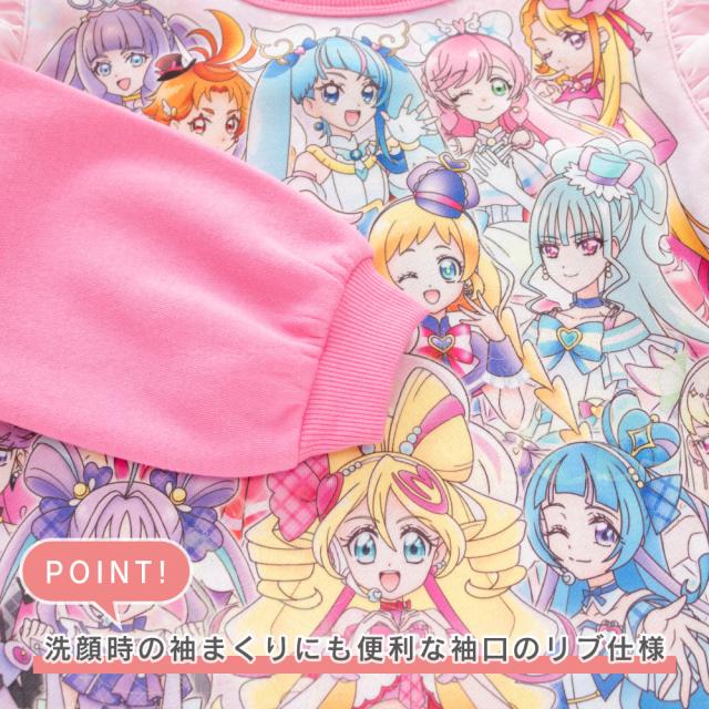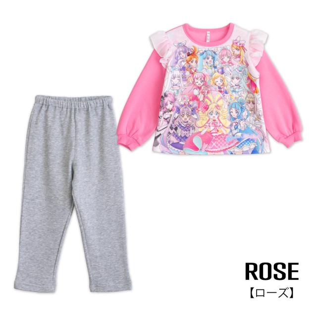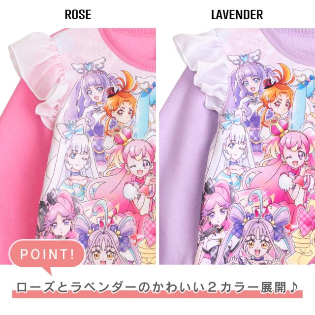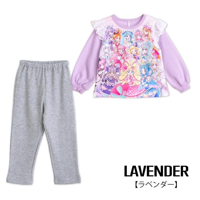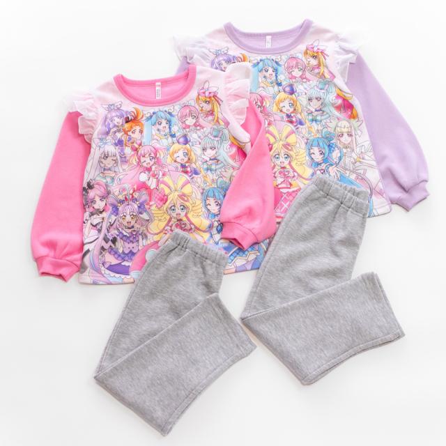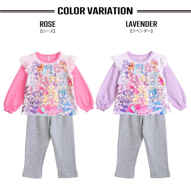 光るパジャマ プリキュアオールスターズ ガールズ シャギー 裏起毛 長袖 長パンツ 秋 冬 プリント ローズ ラベンダー 100-130 48645