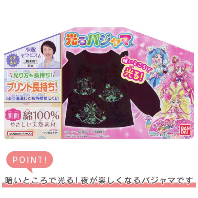 暗い部屋ではプリントが光ります! お着替えを嫌がったりまだ寝たくないお子様、電気を消すのや一人で寝るのが苦手なお子様のおやすみを応援!