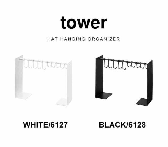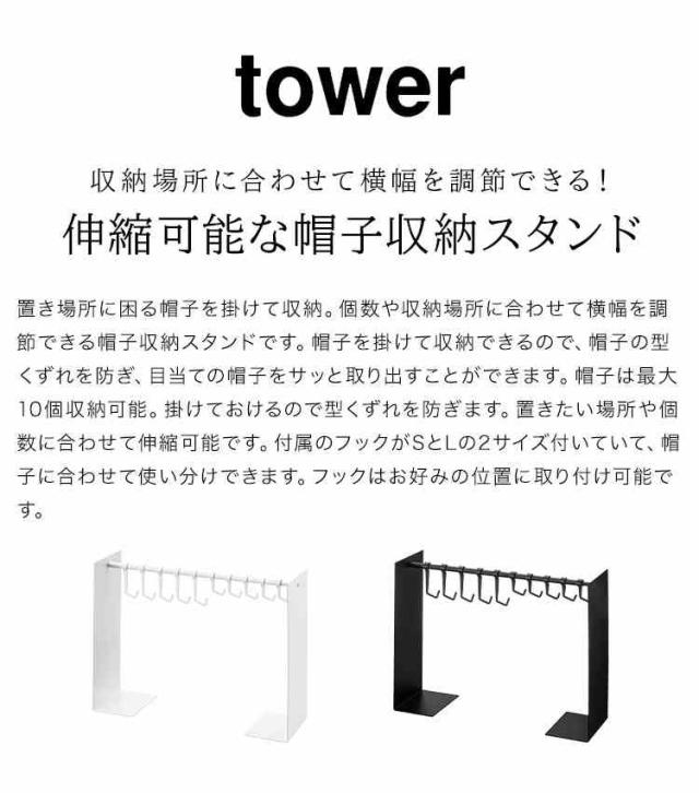 帽子収納スタンド タワー 山崎実業 6127 6128 tower 収納ケース 吊り下げ 帽子掛け 整理整頓 隙間収納 見せる収納 省スペース 付け外し自在 フック 10個 横幅 調節 伸縮 ハット 型崩れ防止 ホワイト ブラック 耐荷重2.5kg クローゼット 玄関 棚上 シンプル おしゃれ スマート