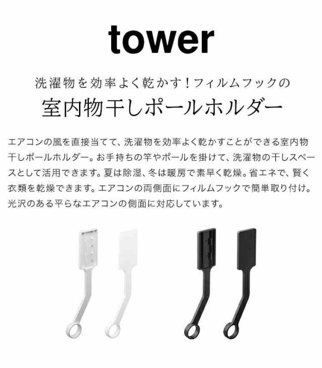 フィルムフックエアコン室内物干しポールホルダー タワー 山崎実業 物干し竿受け 室内 部屋干し グッズ エアコン 下 ホルダー 乾きやすい シンプル 省スペース エアコン下 有効活用 洗濯物 ホワイト ブラック 速乾 除湿 暖房 省エネ ドライバー不要 6308 6309 tower
