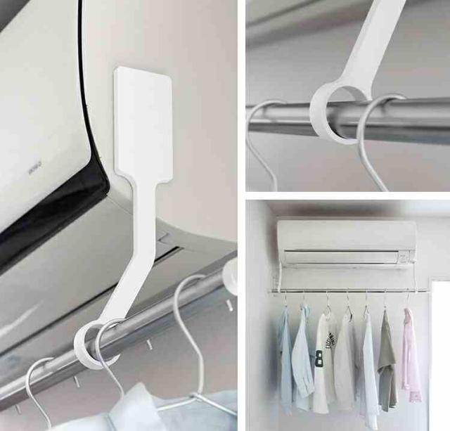 【フィルムフックエアコン室内物干しポールホルダー】