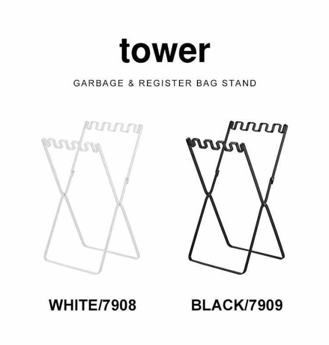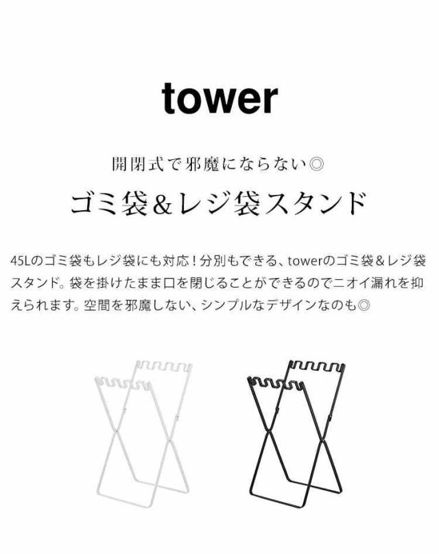 ゴミ箱 山崎実業 ゴミ箱&レジ袋スタンド タワー tower キッチン 分別 ダストボックス 折りたたみ 折り畳み ゴミ袋スタンド ごみ箱 コンパクト ブラック ホワイト 黒 白 台所 レジ袋スタンド ペットボトル 缶 7908 7909 45L 30L スリム 省スペース キッチン雑貨 yamazaki