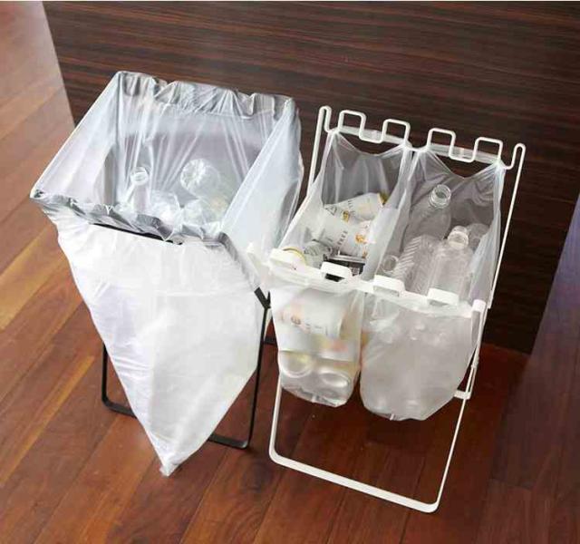 45lのゴミ袋もレジ袋にも対応!分別もできる、towerのゴミ袋&レジ袋スタンド。袋を掛けたまま口を閉じることができるのでニオイ漏れを抑えられます。 空間を邪魔しない、シンプルなデザインなのも◎