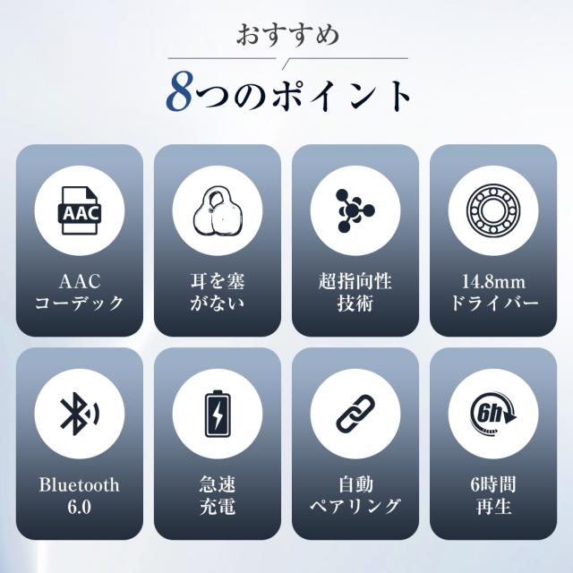 「2025最新」 ワイヤレスイヤホン bluetooth イヤホン ノイズキャンセリング 耳を塞がない BLUETOOTH6.0 ブルートゥース 安定 骨伝導イヤホン 瞬時接続 自動ペアリング マイク内蔵 オープンイヤー型 iPhone/Android ヘッドホン Type‐C充電 HiFi高音質 軽量 小型