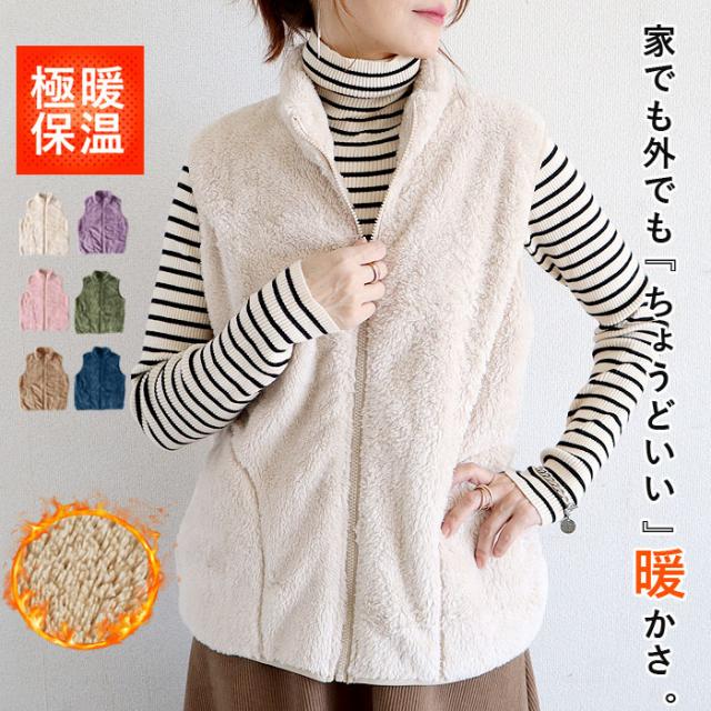 アウター トップス レディース ベスト 秋 冬 白 おしゃれ ノースリーブ 無地 フリース 極暖 暖か ボア 動きやすい 着回し 重ね着 レイヤード 保温 送料無料 40代 30代 50代 60代 大きいサイズ ゆったり 大人 カジュアル かわいい きれいめ SALE セール uricca ウリッカ うりっか ポイント利用