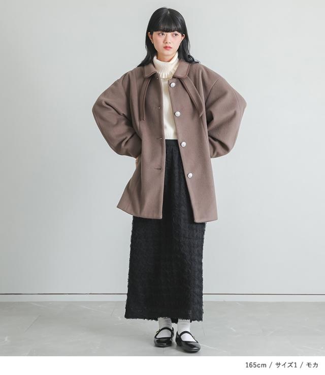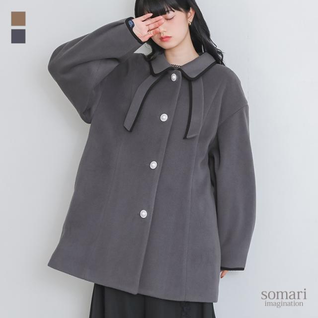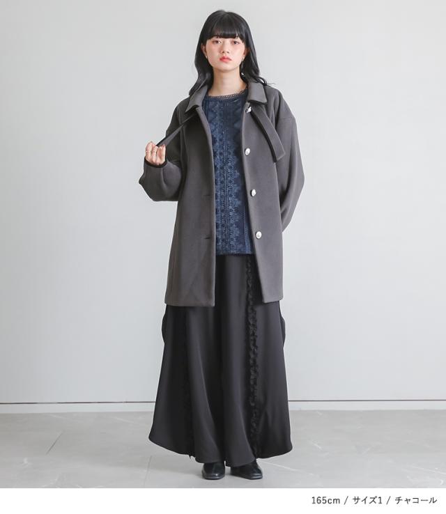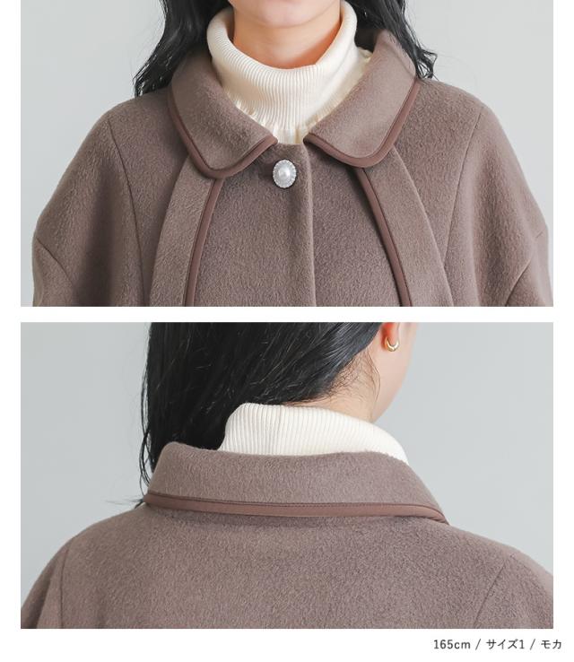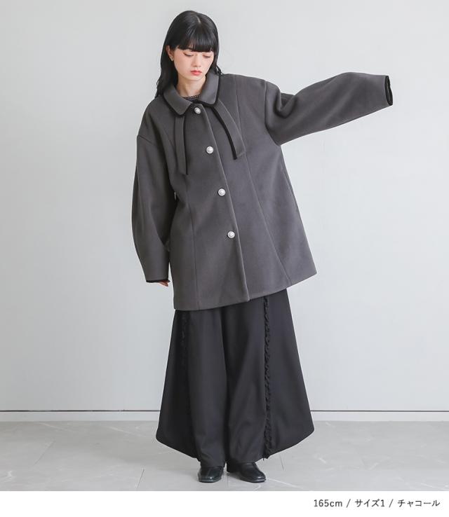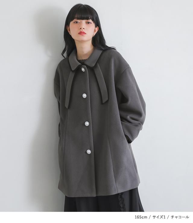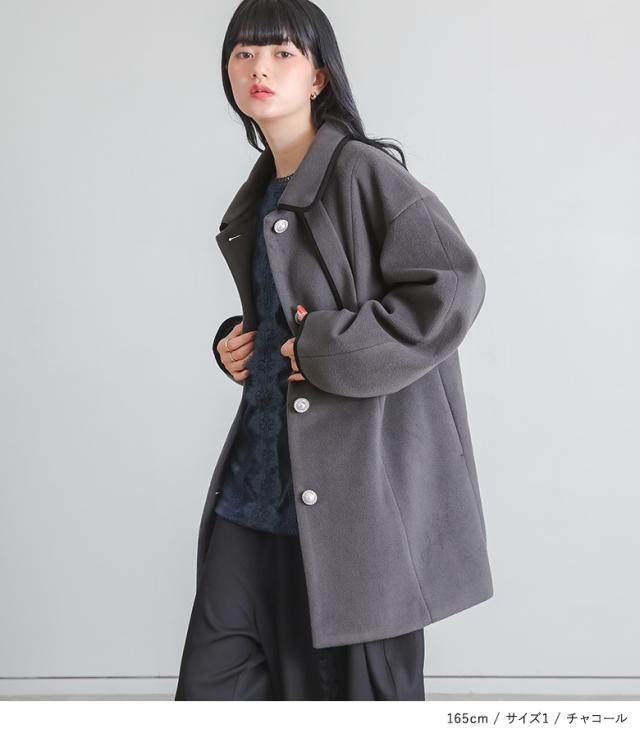 ステンカラーコート ミドル丈 レディース アウター 長袖 コート メルトン生地 リボン パイピング フェイクパールボタン ゆったり 秋 冬 【TP】 羽織り ステンカラー ミディ丈 イミテーションパール パール調 配色 無地 裏地付き カジュアル レトロ クラシカル シンプル キレカジ フェミニン ガーリー 可愛い系 大人女子 大人可愛い お洒落可愛い 大人カジュアル 上品 きれいめ ベーシック ニュアンス ゆる 楽ちん お尻が隠れる Sサイズ Mサイズ Lサイズ LLサイズ 3Lサイズ XLサイズ ぽっちゃり 体型カバー 大きいサイズ プラスサイズ 10代 20代 30代 40代 50代 60代 女子会 お買い物 お出掛け 旅行 おしゃれ お洒落 トレンド 流行 ママ 母 母親 somari imagination ソマリイマジネーション ナチュラル osharewalker オシャレウォーカー おしゃれうぉーかー ブラウン 茶色 モカ グレー 灰色 チャコールグレー チャコール ビッグシルエット オーバーサイズ レイヤード 重ね着 ポケット[ID]14oo0mh[somari imaginationメルトンリボンコート]