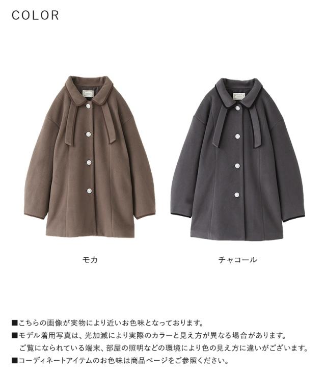 <冬新作>【送料無料】『メルトンリボンコート』【メール便不可】【60】[ステンカラーコート ミドル丈 レディース アウター 長袖 コート メルトン生地 リボン パイピング ゆったり 秋 冬]
