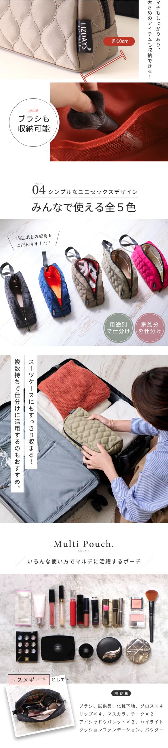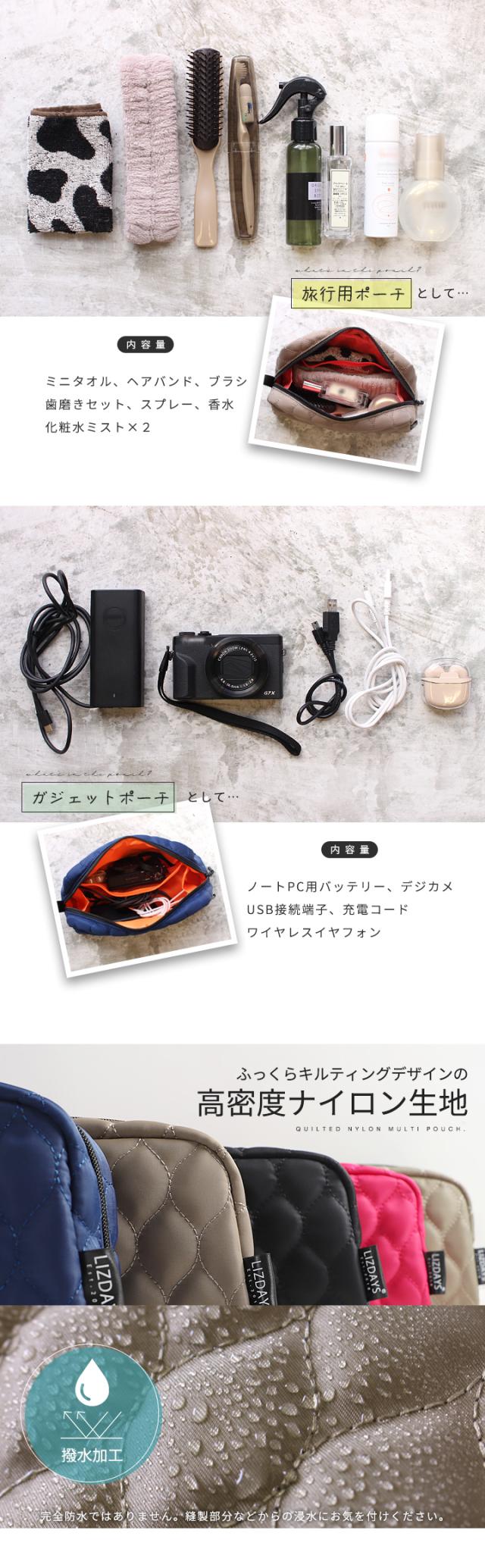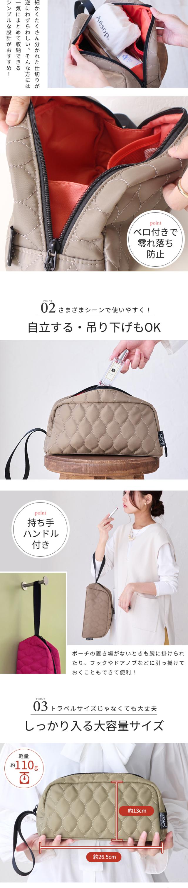 LIZDAYS ポーチ 大きめ 大容量 メイクポーチ トラベルポーチ 自立 マチ広 吊り下げ キルティング 撥水 ナイロン 化粧ポーチ 小物入れ 旅行 ポーチ マルチ ケース ガジェットポーチ 持ち手付き かわいい【lz-79503】