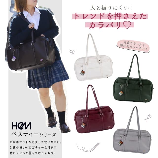 【商品レビュー記入で+5%】ヘム スクールバッグ レディース 合皮 スクバ HeM 女子高生 ボストン A4 べスティー 通学バッグ 通学 学校 学生鞄 大容量 底板 チャーム 男女兼用 ジュニア 学生 女子 男子 中学生 高校生 大学生 ロゴ かわいい 人気 部活 ブランド ロゴ 39-720