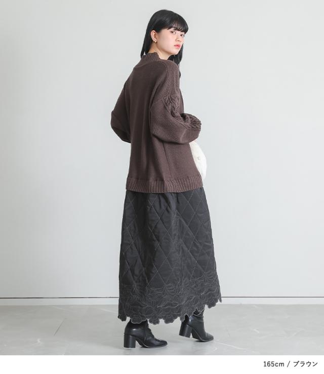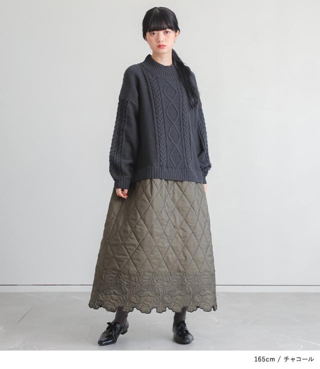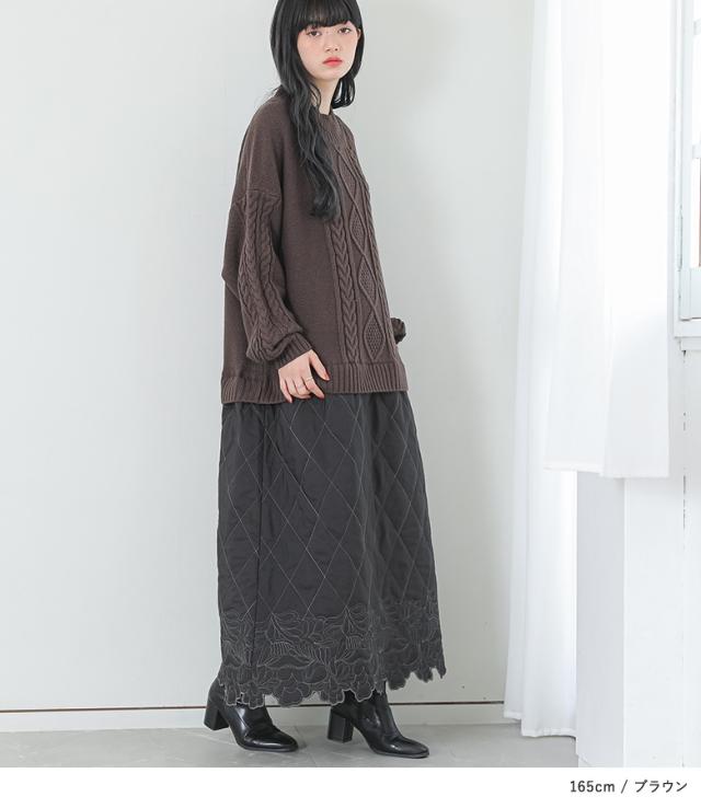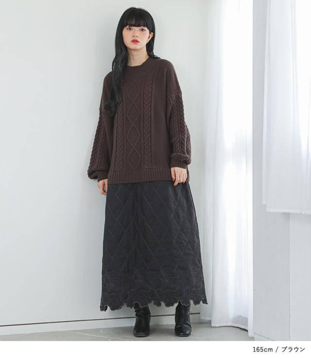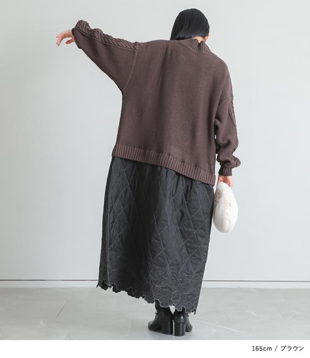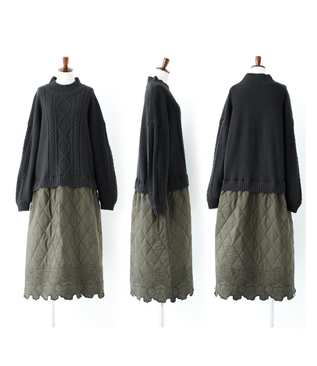 <冬新作>【送料無料】『ケーブルニットキルティングドッキングワンピース』【メール便不可】【40】[ワンピース 長袖 レディース ドレス ロングワンピース 刺繍 ケーブルニット キルティング 中綿 ドッキング 秋 冬]