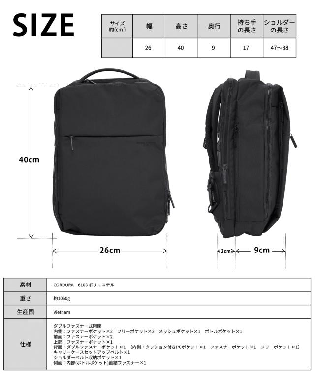 | 仕様 | シンプルデザイン&多ポケット&大容量! 「あったらいいのに」の欲しい機能を詰め込んだ多機能リュック ・ノートパソコンをしまえるスペースには衝撃緩和のクッション材を使用。 ・背負ったままでも取り出せるサイドから中に直接アクセスできるファスナーポケット。 ・水滴が中に染み込まないよう防水素材使用のポケットも装備。 ・メインルームは収納がしやすいようマチ外れるマジックテープでフルフラット仕様。 通勤・通学はもちろん、デイリーで使えるように、コーディネートを選ばないシンプルなデザインで、ジムバック、マザーズバックなど、 いろんなシーンで使える活躍します。 タフな素材「コーデュラー610Dポリエステル」 一般的な基準値に比べ10倍以上の耐摩耗性(第三者機関調べ) 擦れが起こりやすい環境でも安心のタフさ。 財布や手帳に、ノートパソコンからタブレットまで。 毎日使うものも楽々収納できる大容量! |