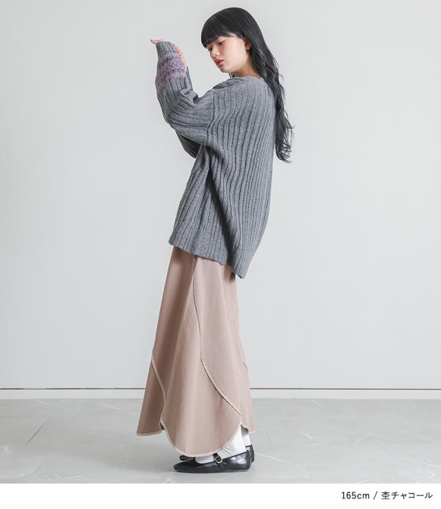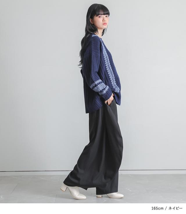 ■デザイン レースデザインモヘヤタッチケーブルニット。配色のレーステープを身頃と袖にあしらって雰囲気のあるデザインニットに仕立てました。ケーブル編みとリブ編みで表情のある編地にしモヘヤタッチの糸を使用しているので柔らかで暖かな着心地まで叶えた一着です。 ■コーディネート ゆるっとしたサイズなのでパンツでもスカートでもボトムスを選ばずご着用いただけます。綺麗めなボトムや、デニムなど幅広いボトムとも相性抜群です。 ■素材 ニットには暖かいモヘヤタッチの糸と繊細なデザインのレーステープを使用。分厚すぎない程よい厚みがあり、暖かみのある生地感です。 ■製品についての注意書き ニット製品につきまして。 ニット素材の持つ特性として編み上げる行程やプレス仕上げによって多少サイズや風合いの個体差が生じる場合がございます。 着用した時と実寸の長さが変わる可能性がございます。 また、着用の際ピリングが避けられず、完全に防止することはできません。毛玉取り器等で丁寧に取り除いてください。 ご了承の上、ご購入いただきますようお願いいたします。 |
