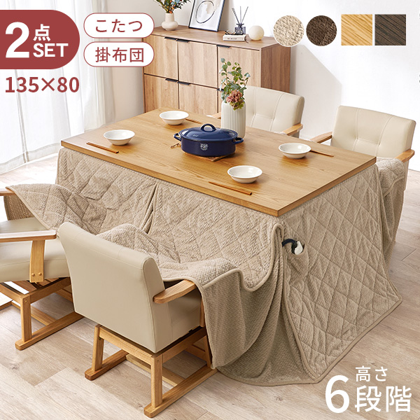 こたつ ハイタイプ セット こたつテーブル 135 ダイニングこたつ 高さ調節 こたつセット 長方形 ダイニングこたつセット コタツセット 2点 135×80 ミンカ 炬燵 コタツ ダイニングテーブル 掛け布団 4人用 2点セット