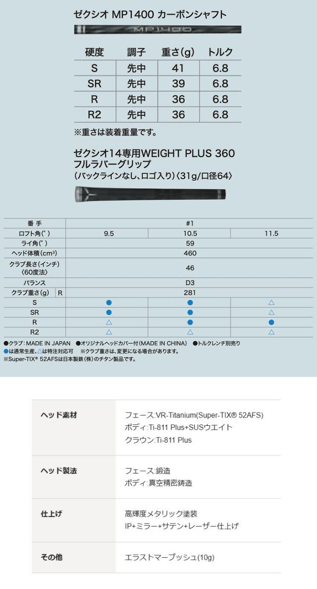 ダンロップ ゼクシオ 14 ドライバー ゼクシオ MP1400 カーボンシャフト 2025年モデル[DUNLOP XXIO14]