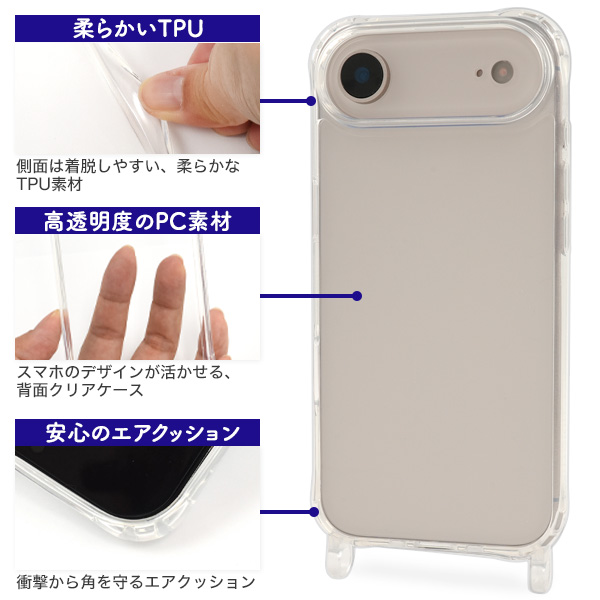 iPhone Air用 リング型ストラップホール付きクリアケース