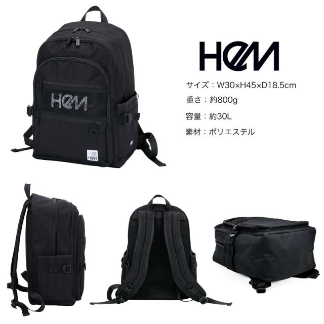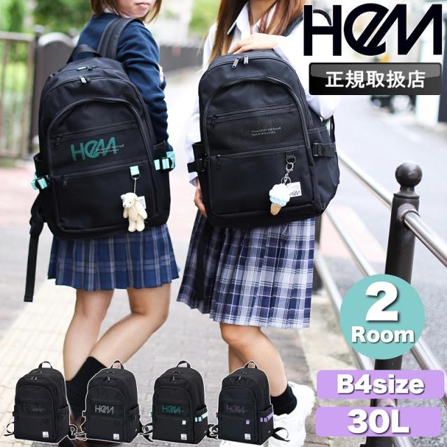 【商品レビュー記入で+5%】ヘム リュック レディース メンズ HeM 2層式 リュックサック デイパック バックパック レイ 通学バッグ 通学 学校 スクールリュック 30L B4 撥水 大容量 PC 男女兼用 学生 中学生 高校生 大学生 大人 通勤 普段使い スポーツ 部活 ブランド 39-712
