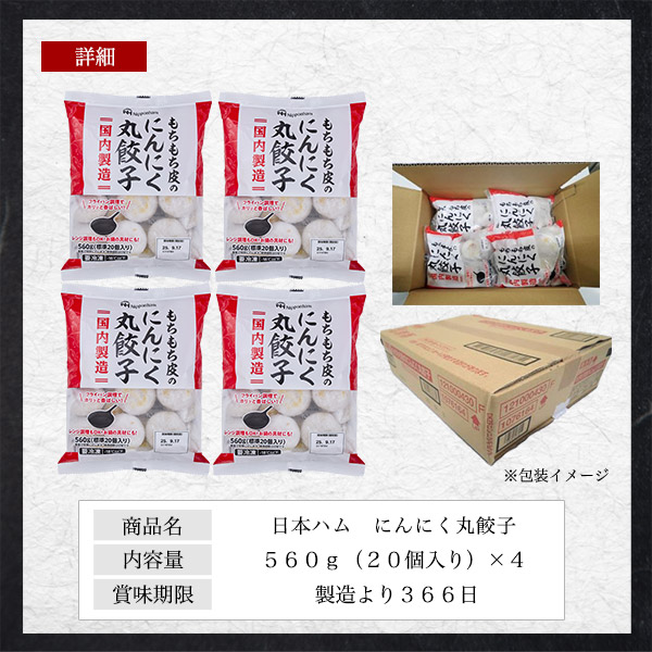 日本ハム もちもち皮のにんにく丸餃子 80個セット (20個入り)×4パック 餃子 ぎょうざ お取り寄せグルメ 食べ物 美味しい ごちそう 惣菜 おかず もう1品 国産 国内製造 日本 送料無料【冷凍配送】クール便