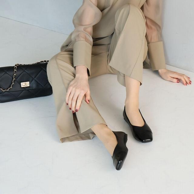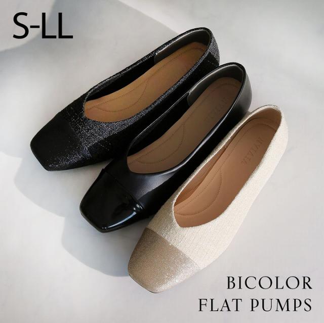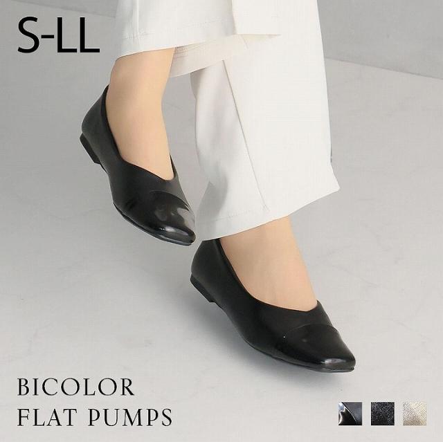 異素材バイカラーフラットパンプス