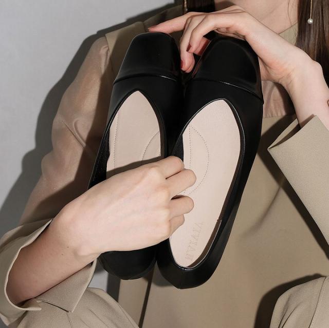 【店内全品10%OFFクーポン】パンプス 痛くない 柔らかい 歩きやすい 外反母趾 春新作 VIVIAN ヴィヴィアン パンプス フラット フラットシューズ スクエアトゥ バイカラー ぺたんこ ペタンコ 柔らかい 痛くない V1549AL