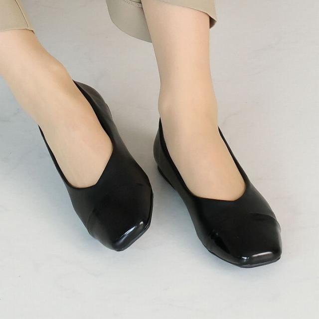 ・スクエアトゥ×Vカットで履くだけで大人のこなれ感を演出。