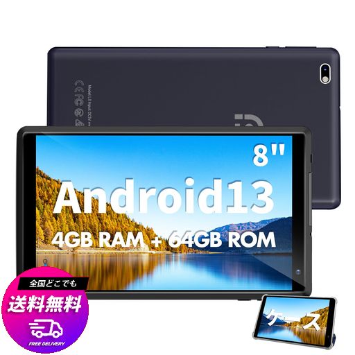タブレット 8インチ WI-FIモデル ANDROID 64GB ROM 1280*800 IPSスクリーン 5000MAH バッテリー 動画視聴 電子書籍 ケース付き PRITOM 紺色