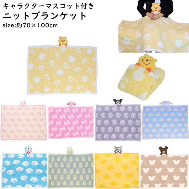 キャラクター マスコット付き ブランケット ひざ掛け 毛布 ニット生地 刺繍 半立体 約70×100cm