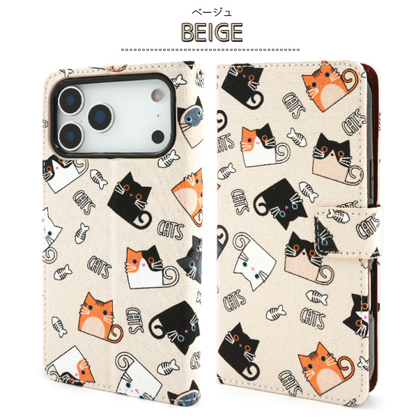 食いしん坊な猫ちゃん達を全面にプリントした生地を使用した手帳型ケースです。 衝撃やキズなどからスマートフォンを守るのはもちろん カメラや各種ボタンなど、ケースに入れたまま操作可能です。 内部はソフトケースなので着脱が簡単! 横開きタイプなので、手帳のように使うことができます。 内側にはカードポケットとサイドポケットが付いています。 また、ストラップとストラップホール付きです。 カラーはベージュとグレーの2色からお選びいただけます。 | ||||||||||||||