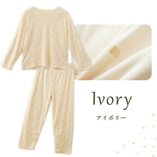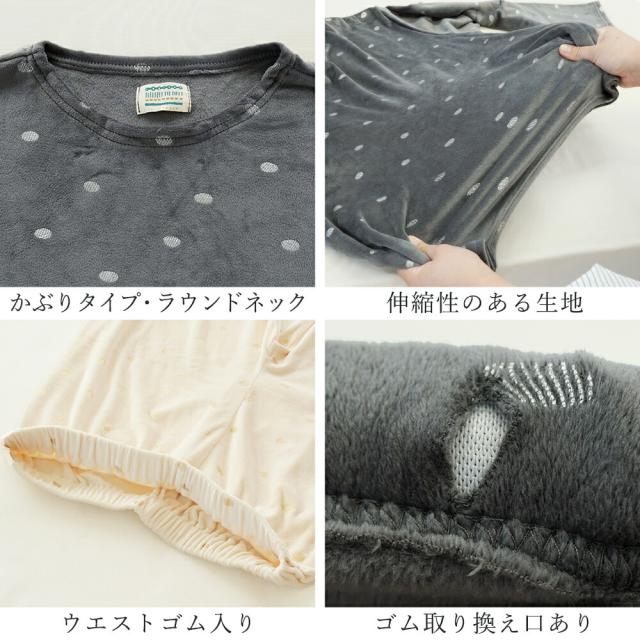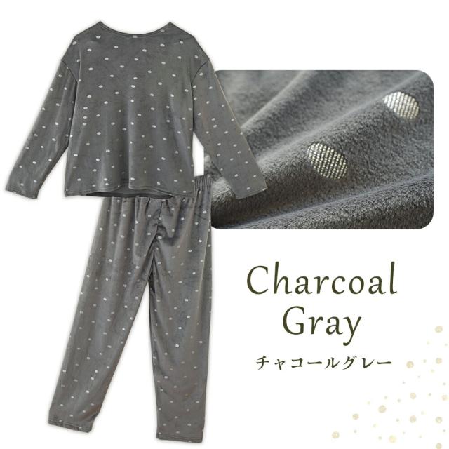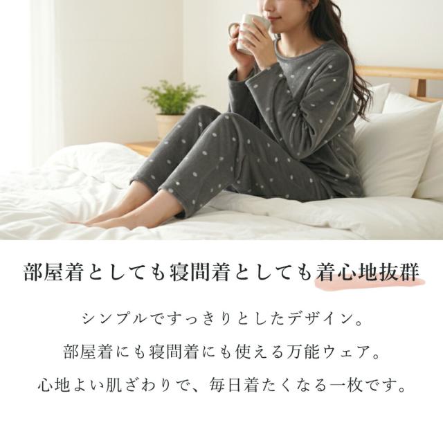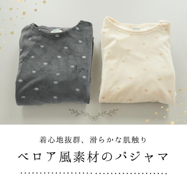 [keyword | 暖か ベロア風 パジャマ レディース なめらか 箔押し ドット柄 かわいい 長袖長ズボン 上下セット 丸首 かぶり 長袖 長ズボン ふんわり 軽い ゆったり ぽか活 カジュアル シンプル 婦人 M L 冬 セットアップ 節電]