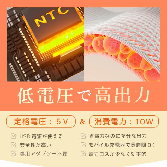 | 【簡単なリモコン操作】 USB電源に繋いで電源ボタンを押すだけで、簡単に暖まります。 しかも、暖まるのも速いからすぐにぽかぽかに♪ |