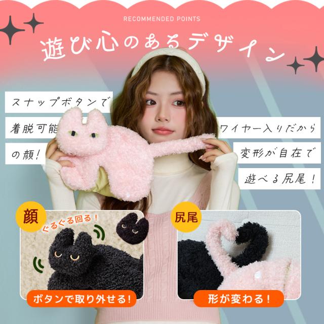 | かわいい猫の形のハンドウォーマーで寒い季節もぽかぽかに過ごしませんか? もこもこでかわいいフォルムに癒されながら、手元やお腹をピンポイントで温めます♪ |