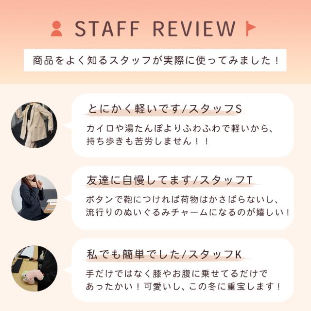 | 【多機能6WAYタイプ】 ハンドウォーマー、キーホルダー、ヒートパッド、ぬいぐるみ、リストレスト、モバイルバッテリー入れなど、様々な使い方ができるから便利! |