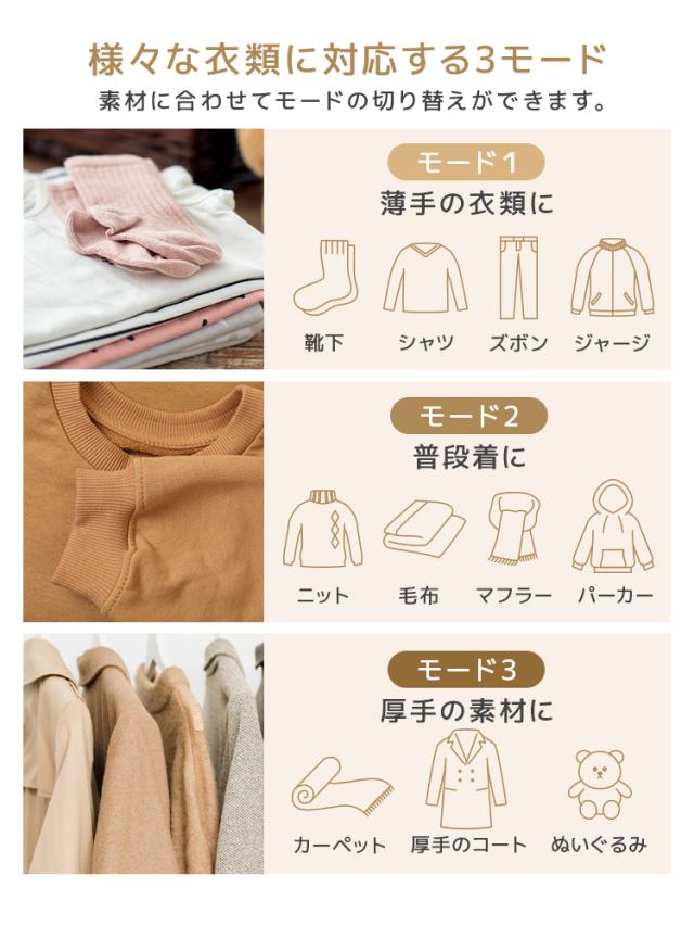 ・素材に合わせて選べる3モード機能で衣類を痛めません。
