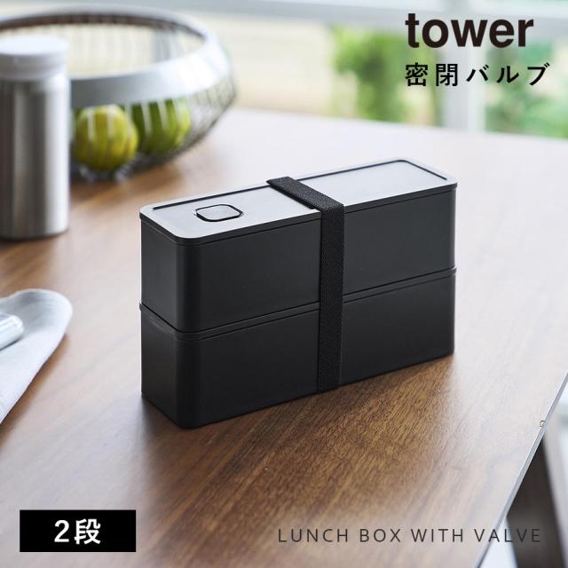 バルブ付き密閉ランチボックス タワー 2段 スリム 山崎実業 tower 弁当箱 スリム 2段 密閉 レンジ対応 食洗機対応 おしゃれ モノトーン ホワイト ブラック 10272 10273