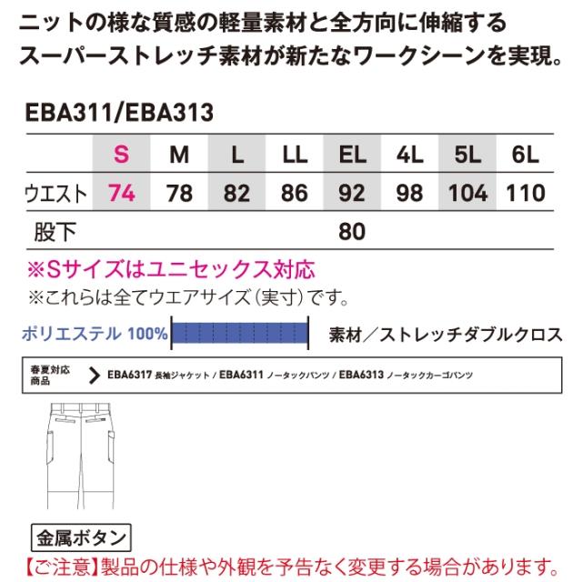 ビッグボーン bigborn 作業服 作業ズボン EBA313 ノータックカーゴパンツ S-LL オールシーズン 作業着